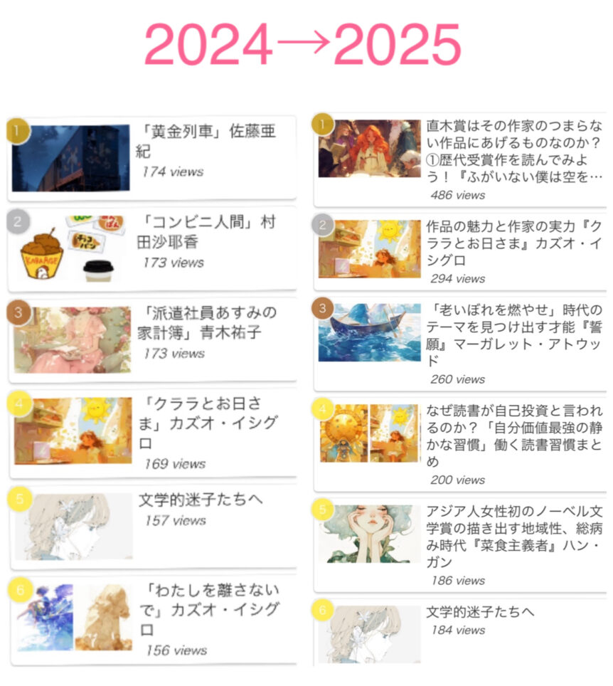 - 24位 2024年の人気50記事を一挙公開!社会人が読書生活をリスタート 104view(2025/02)