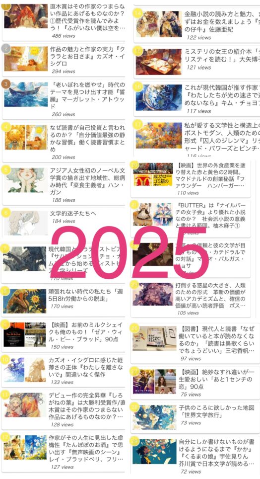 2025年、検索が始まったのもこのページの存在が大きかったかなと思うし、芥川賞企画にも続いたシリーズ感覚はこの記事とポストモダンの偶然の連なりなどによるところが大きかったです。