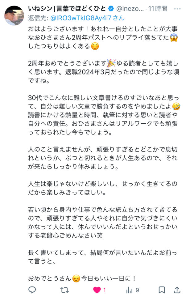 そしていねシンさんのお言葉にもほろっとしました😿❤