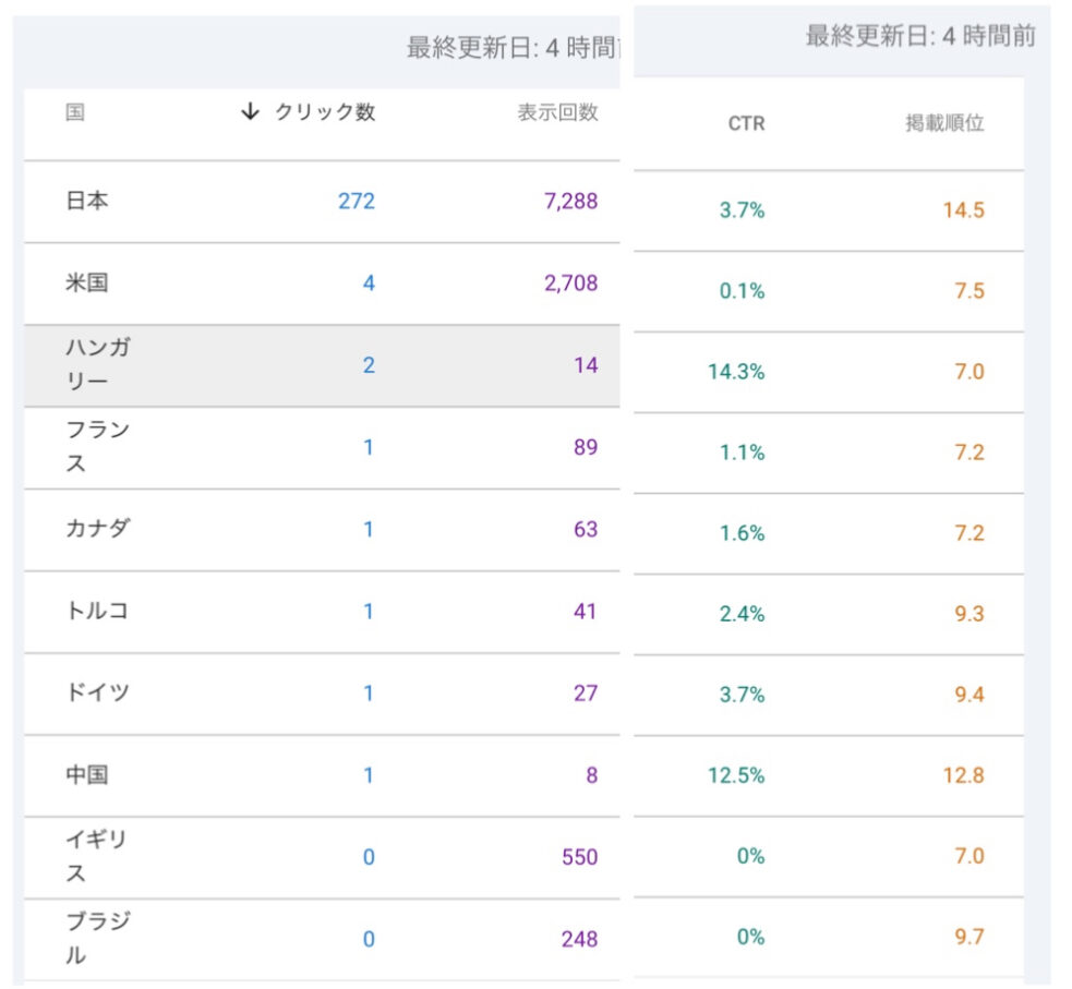 ちなみに上の画像はclick数で上位から並んでいるのですが、表示回数だとブラジルやブラジルなど南米の国での表示もされていたりして、南米を感じることも出来ました🐰♥